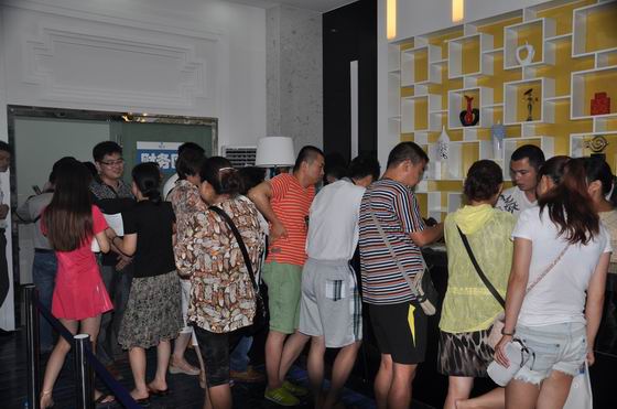 海容廣場(chǎng)LOFT公寓滿足投資增值、豪華辦公與休閑居住三重功能,面積小,投資少,總價(jià)低,以一層價(jià)格賺足兩層空間。認(rèn)籌現(xiàn)場(chǎng),客戶們有的沙盤(pán)邊看房,有的認(rèn)真研究戶型模型,還有的向置業(yè)顧問(wèn)咨詢房源的相關(guān)信息,氣氛十分活躍。